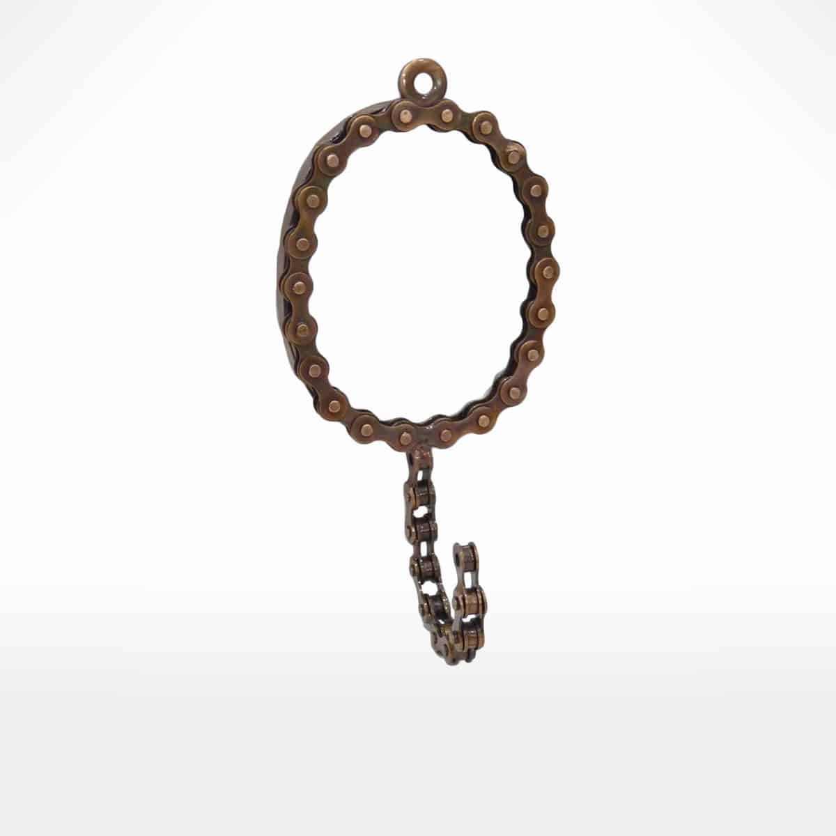 Made from: Recycled bicycle chain and chain with a copper antique finish
